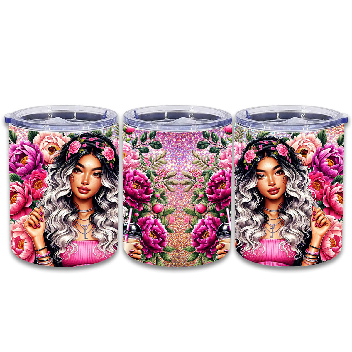 Dieser farbenfrohe Edelstahl-Thermobecher bezaubert mit seinem tollen Druck. Der Becher ist doppelwandig und hat einem Deckel mit Schiebeöffnung.